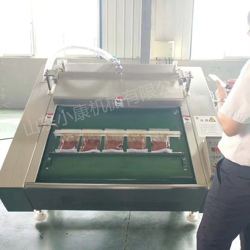 一、雙室真空包裝機(jī)。如果產(chǎn)品小包裝,可以用常規(guī)雙室真空包裝機(jī)。若尺寸較大,可以將雙室真空包裝機(jī)工作臺(tái)面訂做成下凹式真空包裝機(jī),防止袋內(nèi)的液體流出。它的下凹槽是根據(jù)產(chǎn)品包裝大小來(lái)決定的。下凹槽并不是越深越好,而是要根據(jù)物品的實(shí)際情況來(lái)確定,常用的規(guī)格一般為4CM 6CM 10CM三種,用戶需要根據(jù)自己的產(chǎn)品來(lái)確定選購(gòu)哪一種規(guī)格。酸菜里是有些水分的,用這種下凹的機(jī)型可以避免水分被抽出來(lái)。