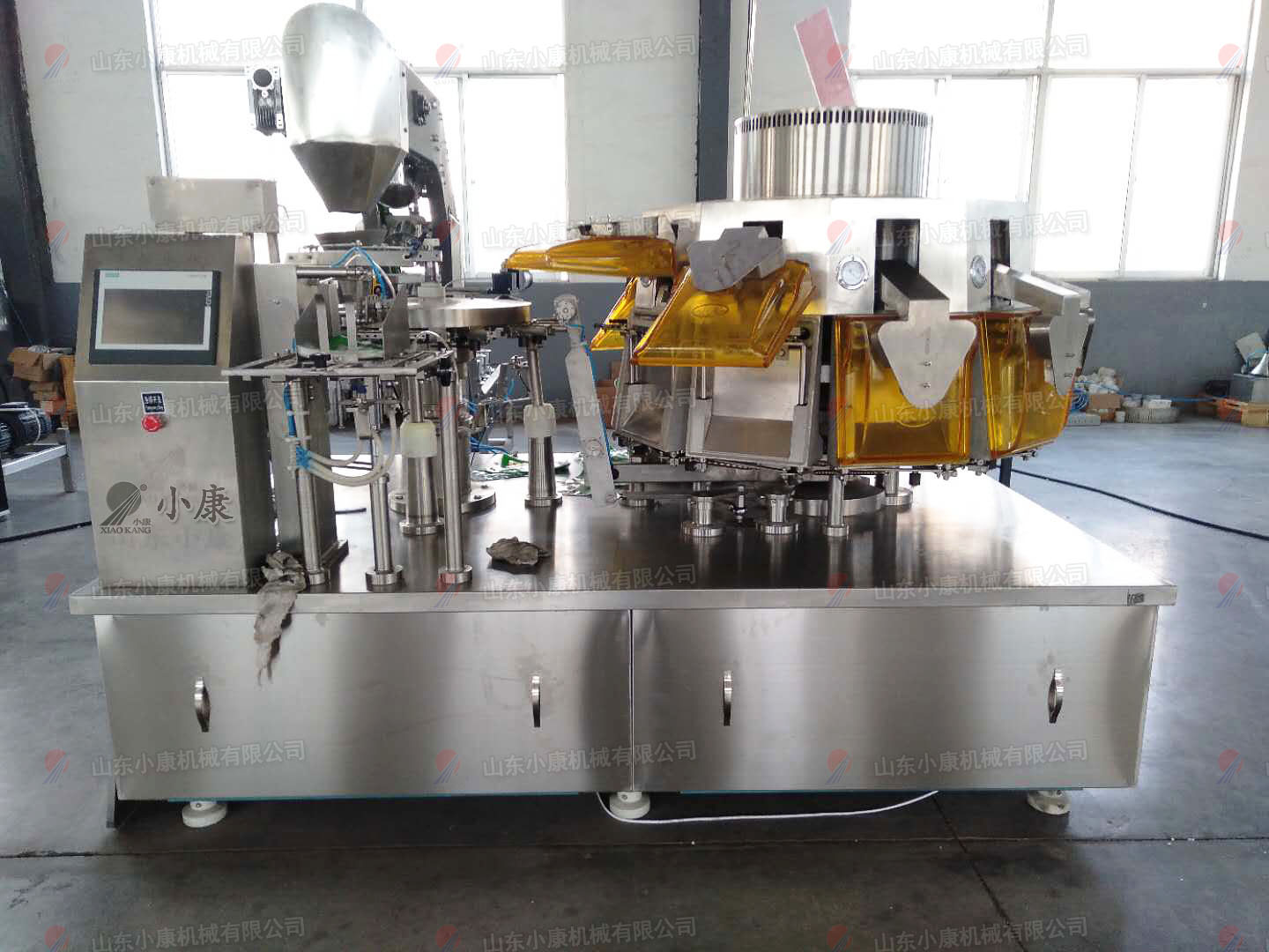 將袋子放在設(shè)備的取袋部,設(shè)備機(jī)械抓會(huì)自動(dòng)的取袋、開袋、給計(jì)量裝置信號(hào)計(jì)量并落料、封口、輸出。該設(shè)備的出現(xiàn)代替了手工包裝,操作方便,包裝速度快,節(jié)約了人工費(fèi)用以及管理費(fèi)用,為企業(yè)大大減少了生產(chǎn)成本,提高了利潤(rùn)率。該給袋包裝機(jī)包裝范圍廣泛,除了包裝酸菜以外,還可包裝液體、醬體、粉劑、顆粒、固體各種物料,只需根據(jù)不同的物料選擇不同計(jì)量充填裝置即可。