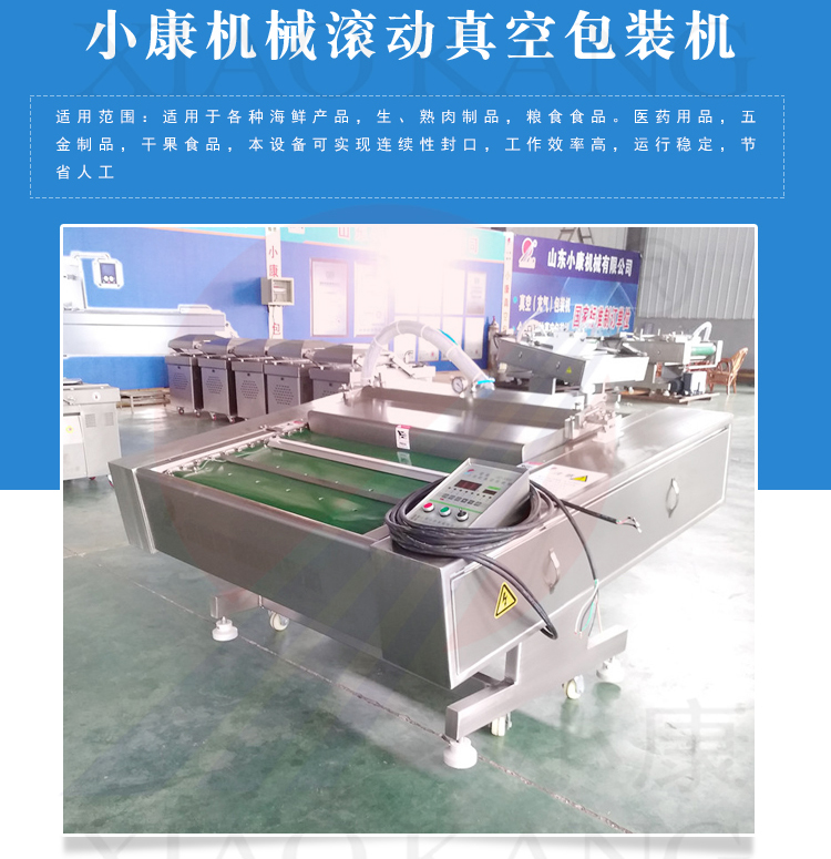 連續(xù)滾動式真空包裝機采用鏈條轉(zhuǎn)動,履帶為荷蘭進口傳送帶,自動擺蓋,連續(xù)輸出產(chǎn)品,所以也有人稱其為連續(xù)真空包裝機、鏈式真空包裝機或傳送帶真空包裝機。