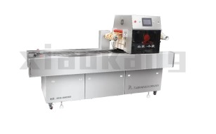 目前市面上氣調(diào)鎖鮮包裝機,大致分為兩類:立式氣調(diào)鎖鮮包裝機和連續(xù)氣調(diào)鎖鮮包裝機。氣調(diào)鎖鮮包裝機的操作過程也比較簡單:首先將食品放到預(yù)制盒里面,通過真空或氣體置換的方式先將預(yù)制盒里面的空氣排出,然后通過氣體混配器將具有保鮮功能的氣體按照一定的比例充入到預(yù)制盒中,再進行封口。